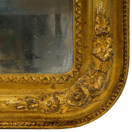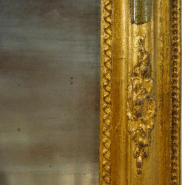 Specchiera di linea sagomata in legno dorato, Francia, XIX secolo, ingombro cm h 94x61, (difetti).