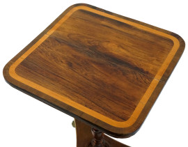 Tavolino in legno impiallacciato con profilo ad intarsio in legno chiaro, XIX secolo, cm h 89,5x46x45,5, (difetti).