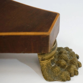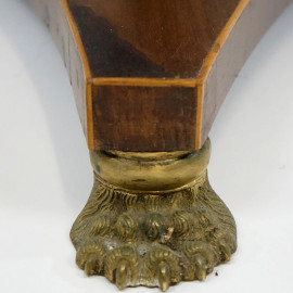 Piano di linea quadrata sorretto da fusto a balaustro tornito poggiante su pianetto di base triangolare con tre piedi ferini in bronzo dorato;