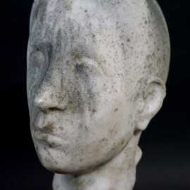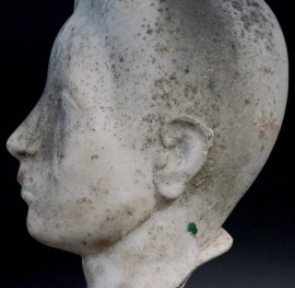 Testa di fanciulla, scultura in marmo bianco, cm h 33, base in marmo, XIX secolo, (difetti)