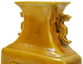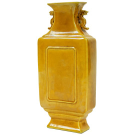 Vasetto in porcellana smaltata gialla, cm h 20, Cina, XX secolo.