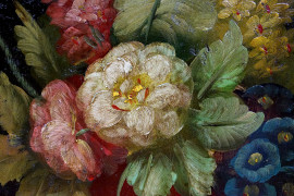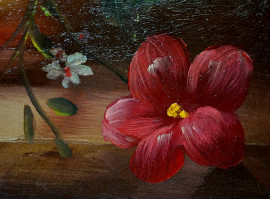 Vasi con fiori, coppia di dipinti ad olio su tavola, cm 25,5x19,5, XX secolo, entro cornici.