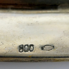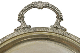 Vassoio di linea ovale in argento 800, profilo con particolari cesellati, punzone Padova, cm 55x34, peso gr.1315