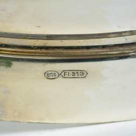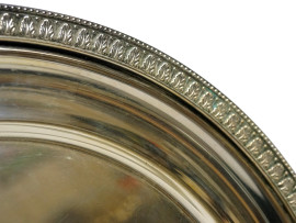 Vassoio di linea tonda in argento 800, profilo con decori cesellati a palmette, diam.cm 36,5, Firenze, seconda metà XX secolo, peso gr.830, (segni del tempo)