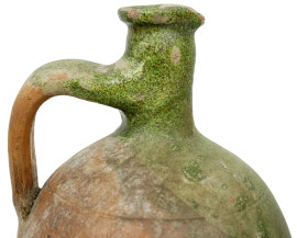 Versatoio in terracotta smaltata, cm h 34 , Turchia, XIX secolo, (difetti).