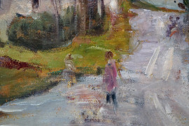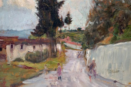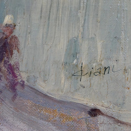 Viale con figure, olio su tela, cm 24x30, firmato Ciani, entro cornice.