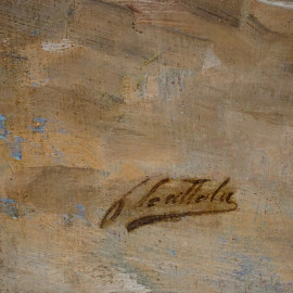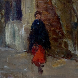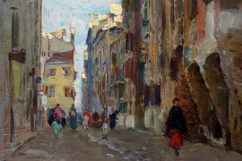 Vicolo di Chioggia, olio su tavoletta, cm 47,5x37,5, firmato F.Scattola.