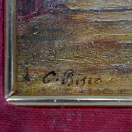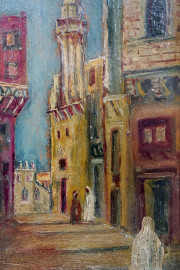 Vicolo di città araba, olio su tavoletta, cm 12x8,5, firmato, entro cornice.