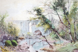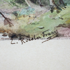 Acquedotto romano, acquarello su carta, cm 13x17,5, firmato Ettore Roesler Franz, entro cornice.