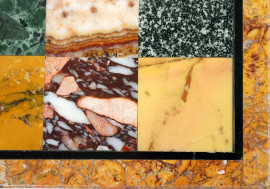 Porfido, bianco e nero d'Aquitania, marmo Settebasi, breccia di Sciro, verde antico, africano, giallo di Siena, granito ed alabastri.