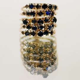 Anello "harem" multiplo in oro basso con zaffiri, peso lordo gr. 7,3, misura 15-18