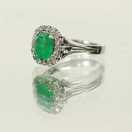Anello in oro 18 KT con smeraldo e brillantini, peso gr.4, misura 13
