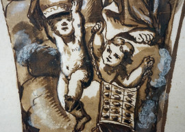 Anonimo del XVIII secolo, Coppia di disegni raffiguranti S.Luca e S.Matteo Evangelista, inchiostro bruno, biacca ed acquarello su carta vergata, cm 29,5x25, (difetti)