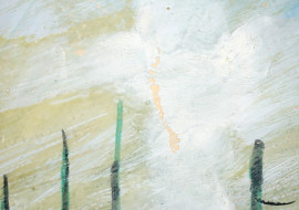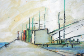 Anonimo del XX secolo, Fiumicino, tecnica mista su cartoncino, cm 28.5x38.5, (difetti).