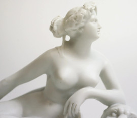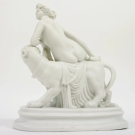Arianna e la pantera, scultura in biscuit, cm h 19,5, manifattura Sitzendorf, prima metà del XX secolo.