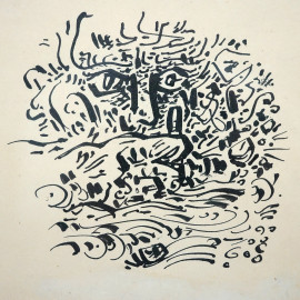 Astratto, tecnica mista su carta, cm 14,5x14,5, firmato André Masson, entro cornice, (lievi difetti sulla carta)