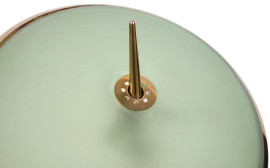 Attr. a Max Ingrand (1908-1969), Lampada da tavolo "Disco volante", anni '50-'60, in ottone e vetro verde satinato, cm h 51x42,5, (segni del tempo, difetti)