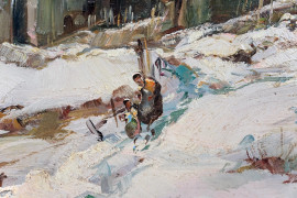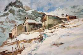 Baita sul Monte Rosa, olio su compensato, cm 30x40, firmato C.Gheduzzi, entro cornice.