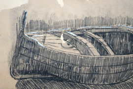 Barca, tecnica mista su carta, cm 20x33, firmato, entro cornice.