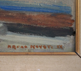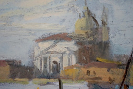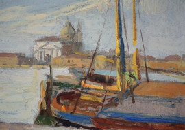 Barche a Venezia, olio su compensato, cm 35x43,5, firmato Marco Novati, entro cornice.