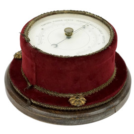 Barometro da parete in metallo e legno, cm 9x18,5, XX secolo, (difetti, meccanismo da revisionare).