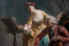 Attribuito a, La Melodia, olio su tela, cm 46,5x57, in cornice.