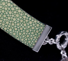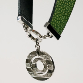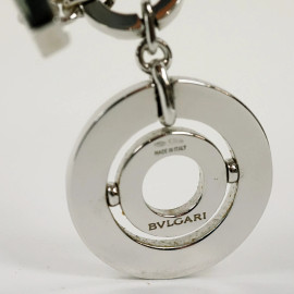 Bulgari, collana girocollo collezione "Astrale" in oro bianco 18 kt, con pendente a forma di dischi impreziositi da diamanti taglio brillante. Entro custodia originale.