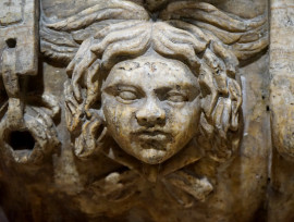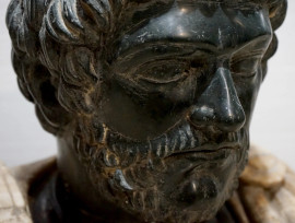 Busto dell'Imperatore Adriano, con armatura centrata da testa di gorgone, marmi policromi, cm h 59x63x30, XIX secolo, (difetti)
