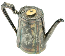 Caffettiera in Sheffield con decori incisi, cm h 21x24, marcato W.W.W.H&Co., XX secolo.