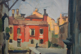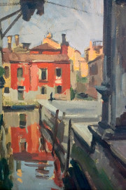 Canale a Venezia, olio su cartone, cm 43,5x35, firmato Marco Novati, entro cornice
