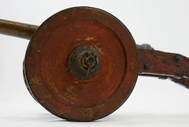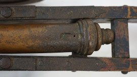 Cannoncino in bronzo del XVIII secolo con base in legno, cm h 22x78x31 circa
