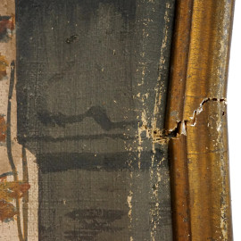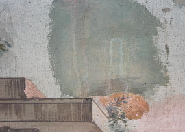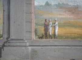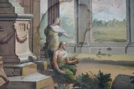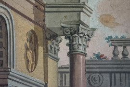Capriccio architettonico, rovine e con figure, tempera su tela, cm h 118x133, fine XVIII-inizi XIX secolo, entro cornice, (difetti e macchie)