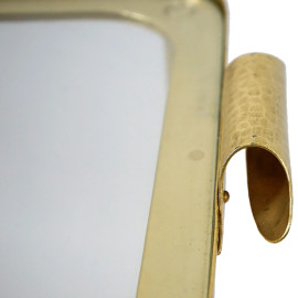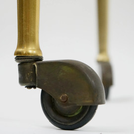 Carrellino portavivande in metallo dorato, due piani in vetro, poggiante su rotelle, cm h 65,5x39,5x55, (difetti).