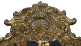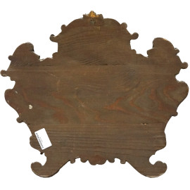 Cartagloria in metallo argentato, XIX secolo, con supporto ligneo, interamente sbalzato a volute e motivi rocaille, misure ingombro cm 50x55, (difetti)