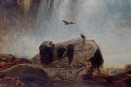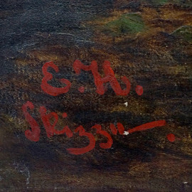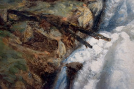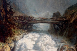 Cascata di Shaffausen, olio su tela, cm 160X133, firmato, entro cornice