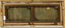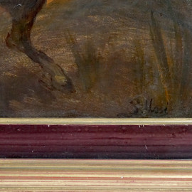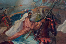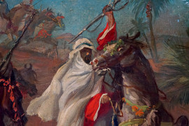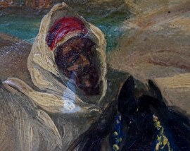 Cavalieri arabi, olio su tela, cm 33x89, firmato S.Ussi, entro cornice