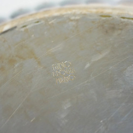 Cestino in metallo argentato, Edigio Broggi Milano, XX secolo, corpo sbalzato, presa a doppio filo intrecciato, cm h 24,5x27x22,5 circa.