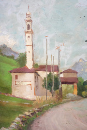 Chiesa degli Appestati, olio su compensato, cm 44,5x30,5, datato, entro cornice.