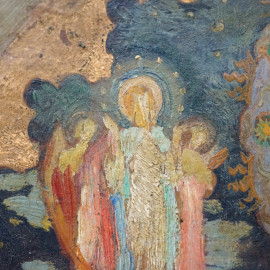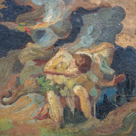 Bozzetto per decorazione absidale, olio su compensato, cm 17x27, entro cornice.