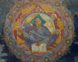 Raffigurante partendo da sinistra l'Immacolata Concezione, Dio Padre entro "mandorla" con teste di cherubini, e la Cacciata dal paradiso terrestre con l'albero della conoscenza del bene e del male.