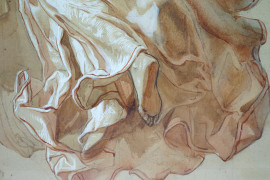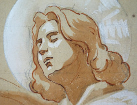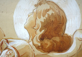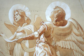 Studio di due angeli con cartigli, disegno a tecnica mista su carta, cm 58,5x43,5, (piccole macchie sulla carta).