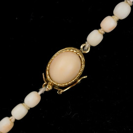 Collana ad un filo in corallo/rosa bianco con chiusura in oro 18 KT, lunghezza cm 74,5, peso lordo 60,4