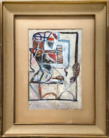 Composizione futurista, 1954, tempera su carta, opera del secondo futurismo realizzata da Sebastiano Carta (1913-1973) nel periodo in cui faceva parte del gruppo LA CASA ROSSA da lui fondato, cui aderirono Antonio Marasco, Enrico Accatino e Roberto Melli, cm 30x20, firmato e datato in basso a destra, [..]