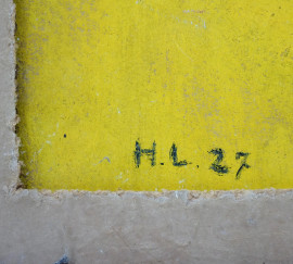 Composizione geometrica, tecnica mista su compensato, cm 32,5x28,5, siglato H.L., entro cornice.