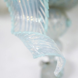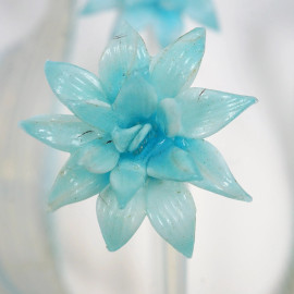 Coppia di appliques a due luci in vetro azzurro di Murano, aplicazioni floreali, cm h 18x38.