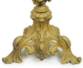Coppia di candelieri in metallo argentato con decori incisi e sbalzati, XX secolo, cm h 25.5, (difetti).