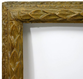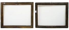 Coppia di cornici di linea rettangolare, XVIII secolo, profilo esterno a foglia di cavolo, intaglio a foggia di campanule ricorrenti che si dipartono dal centro di ogni lato, ingombro cm 74x93,5, misure luce cm 64x83, (difetti)