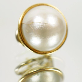 Coppia di orecchini in oro 18 kt con perle Mabe, cm 1,4, peso gr. 13,3, (difetti).