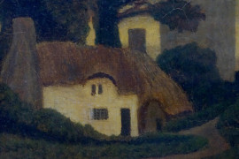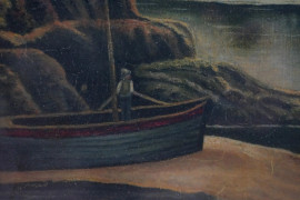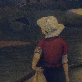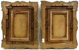 Coppia di paesaggi con figure, olio su tela, cm 42x26,5, firmati e datati, entro cornici.