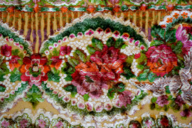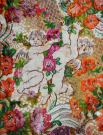 Copriletto in velluto "broccato veneziano" con angeli e rose, misure cm 247x220 circa, (difetti).